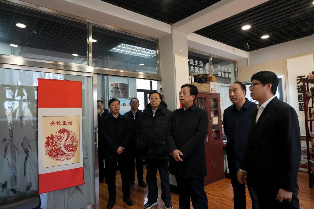 邵國強(qiáng)先后實(shí)地考察校史館、剪紙藝術(shù)設(shè)計與創(chuàng)作工作室、聽障大學(xué)生創(chuàng)新創(chuàng)業(yè)教育實(shí)踐中心及特色康養(yǎng)文旅創(chuàng)意設(shè)計雙創(chuàng)融合基地。邵國強(qiáng)仔細(xì)察看學(xué)校辦學(xué)設(shè)施,與師生親切交流,深入了解學(xué)校七十余年辦學(xué)傳承、教育教學(xué)建設(shè)成效及聽障大學(xué)生培養(yǎng)模式,對學(xué)校在特色育人領(lǐng)域取得的成果予以肯定。