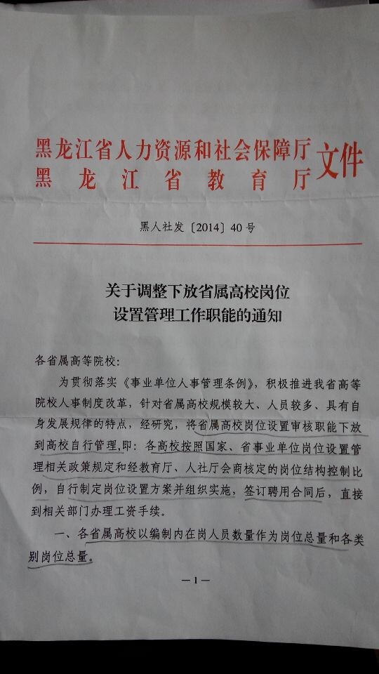 關于調整下放省屬高校崗位設置管理工作職能的通知