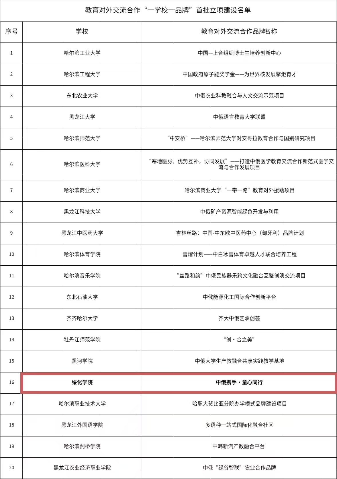 近日,黑龍江省教育廳發(fā)布了《關于教育對外交流合作“一學校一品牌”首批立項建設的通知》,公布了黑龍江省教育對外交流合作“一學校一品牌”首批20個立項建設名單。我校申報的“中俄攜手·童心同行”項目成功入選。