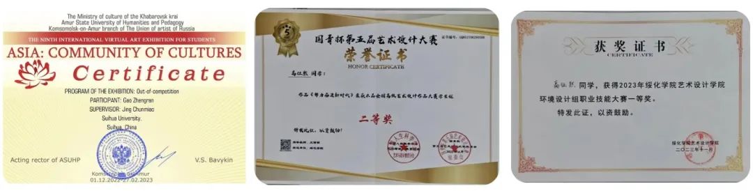 高征然,2020級藝術(shù)設(shè)計學(xué)院環(huán)境設(shè)計專業(yè)學(xué)生,來自山東東營,在校期間榮獲國青杯第五屆藝術(shù)設(shè)計大賽“二等獎”、校級二等綜合獎學(xué)金和三等綜合獎學(xué)金等?,F(xiàn)已被西北師范大學(xué)環(huán)境設(shè)計與鄉(xiāng)村公共藝術(shù)專業(yè)錄取。